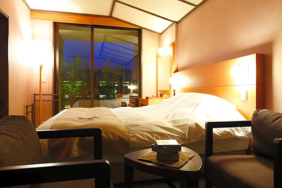 Guests will have a special experience as this double room provides a private open-air bath. The double room offers air conditioning, tatami, as well as a private bathroom boasting a bath and a shower. The unit has 1 bed.